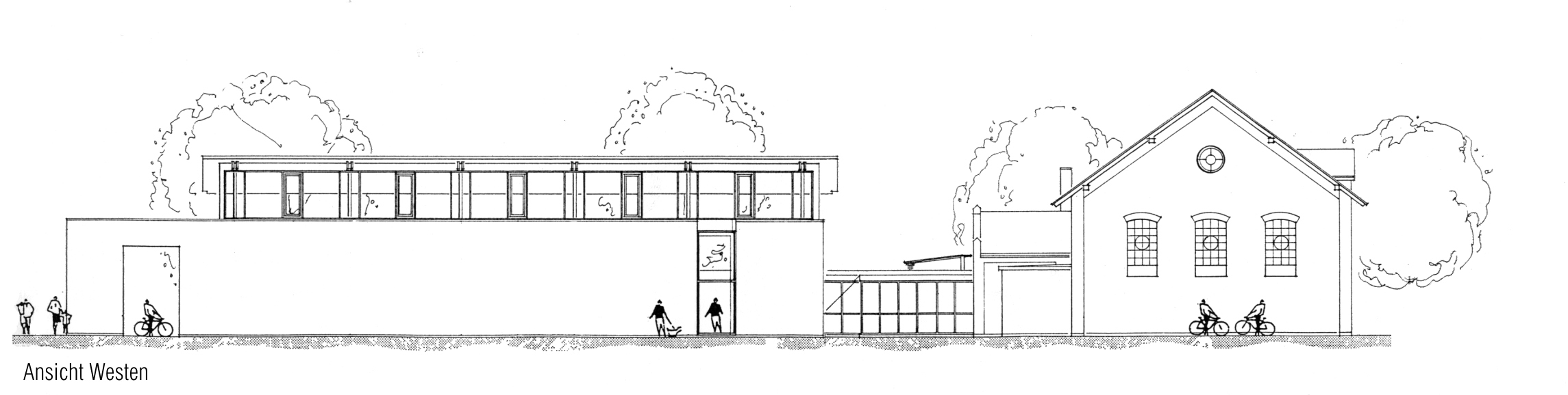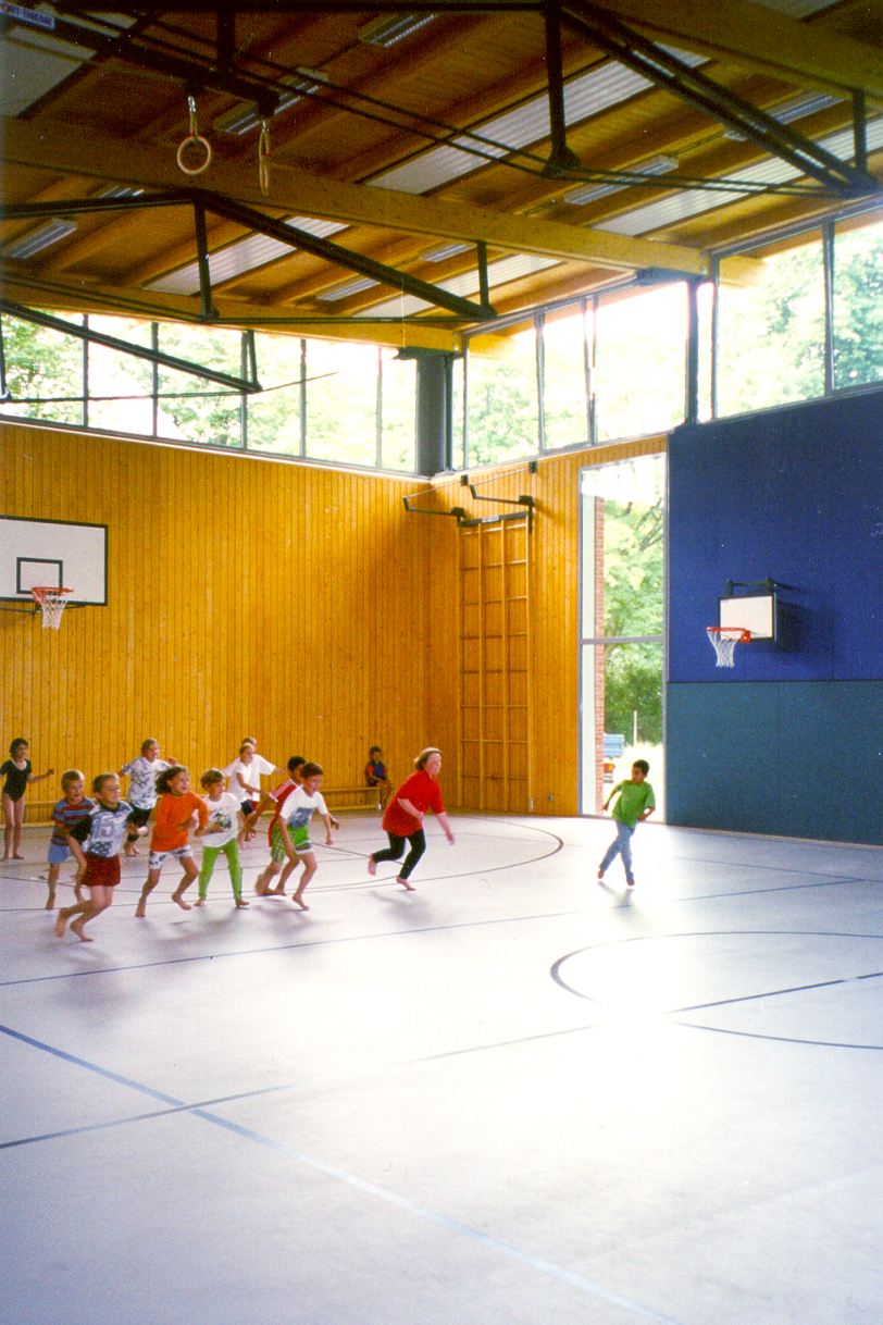 Mit Anbindung an die denkmalgeschützte alte Turnhalle entstand ein Neubau einer Sporthalle für die Bürgerschule in Husum. Der vorhandene Umkleidebereich wurde für die neue Halle erweitert und die aufgrund der direkten Nachbarschaft zum denkmalgeschützten Schlosspark bestehenden Anforderungen berücksichtigt.