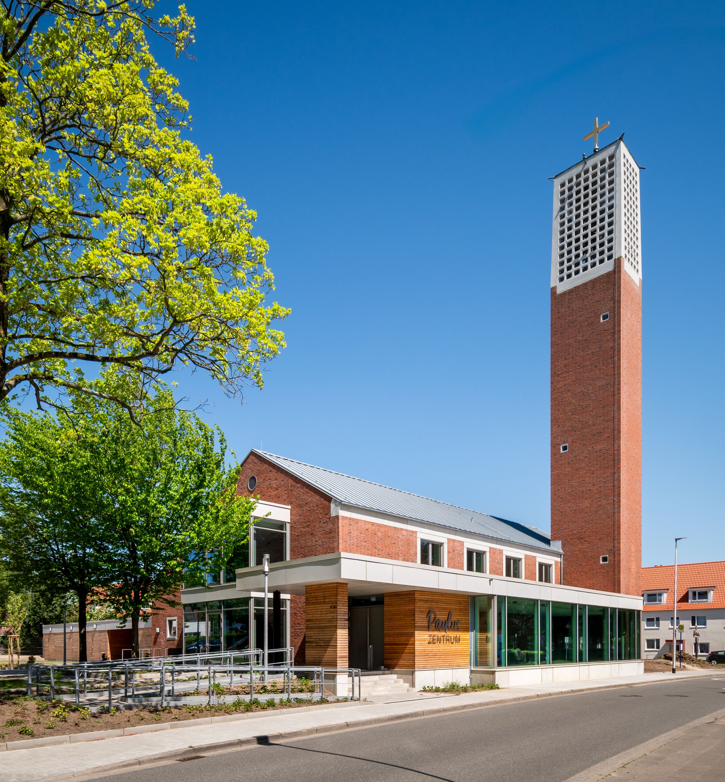 Der Entwurf bewahrt das Erscheinungsbild der St.-Paulus-Kirche, ergänzt es auf einfühlsame Art und Weise und führt die Kirche unter Einsatz von nachhaltigen Materialien und Konstruktionen ihrer neuen Nutzung als Gemeindezentrum zu.